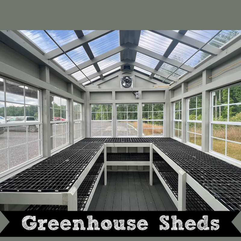 The Greenhouse/Potting Shed page has Q&A, Floor Plans, and Display Price Sheets.