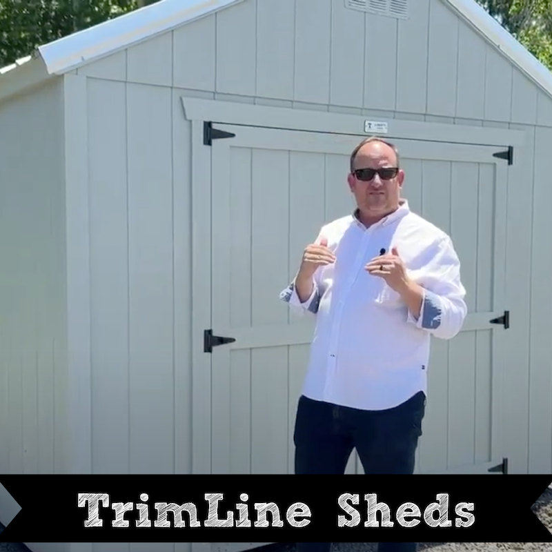 The TrimLine Sheds page describes the purpose of this shed, marketing proposition , and product details.